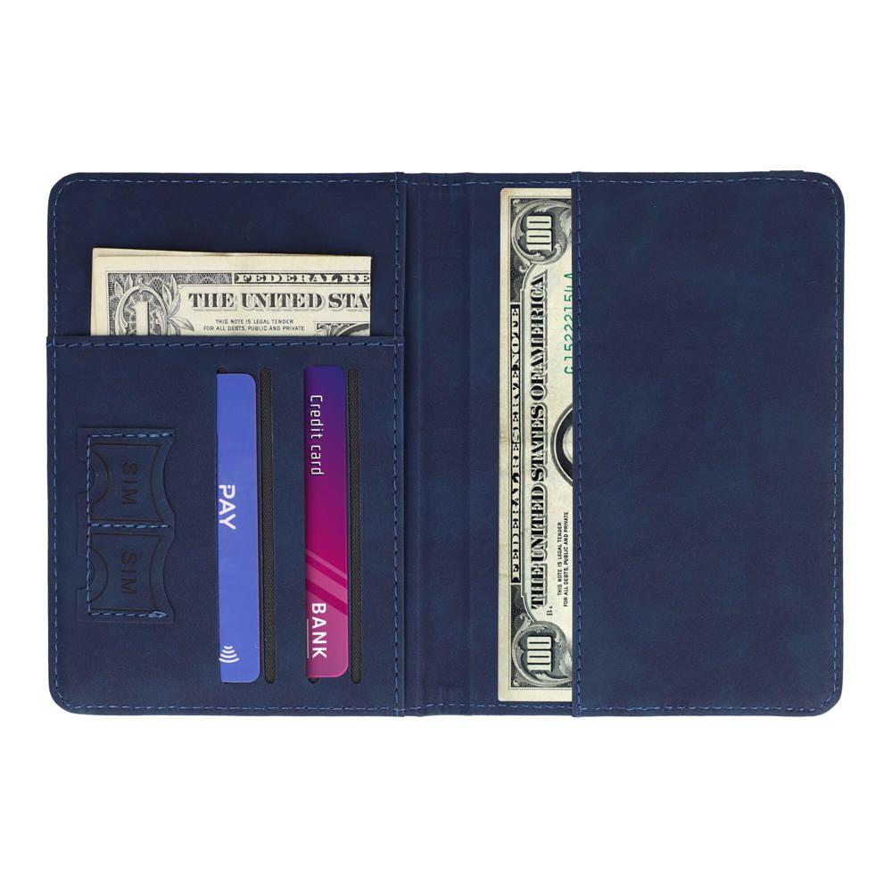 - Compartiments dédiés : espace passeport, 4 cartes de crédit, 2 emplacements SIM, fentes pour cartes d'embarquement.