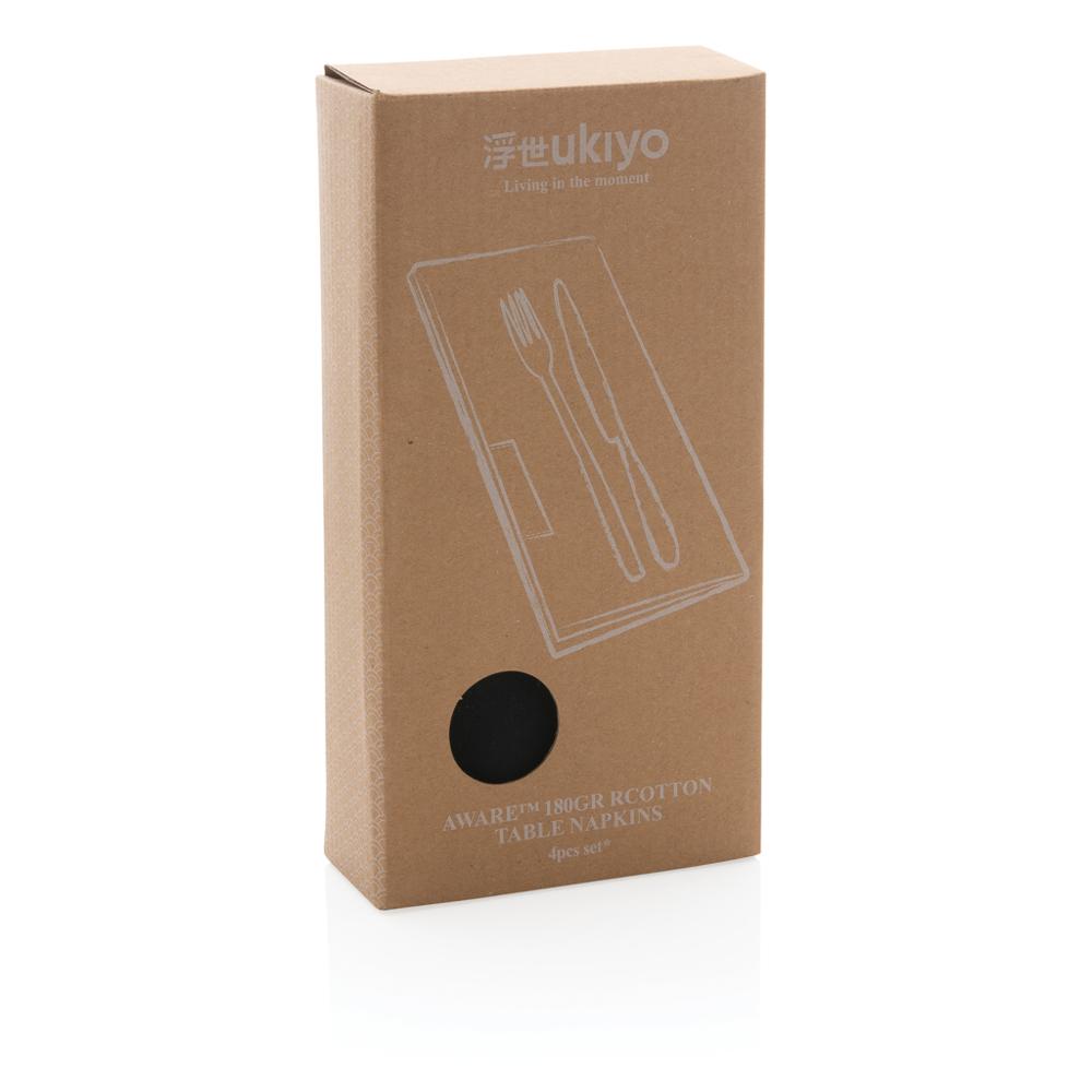 Découvrez notre set de 4 serviettes de table Ukiyo en coton recyclé 180 g/m², format 45x45 cm, idéale pour personnaliser avec votre logo et offrir comme cadeau promotionnel haut de gamme. Polyvalentes, elles servent de serviettes de table ou de sets de table, apportant une élégance raffinée à vos événements d'entreprise ou tables de réception.
