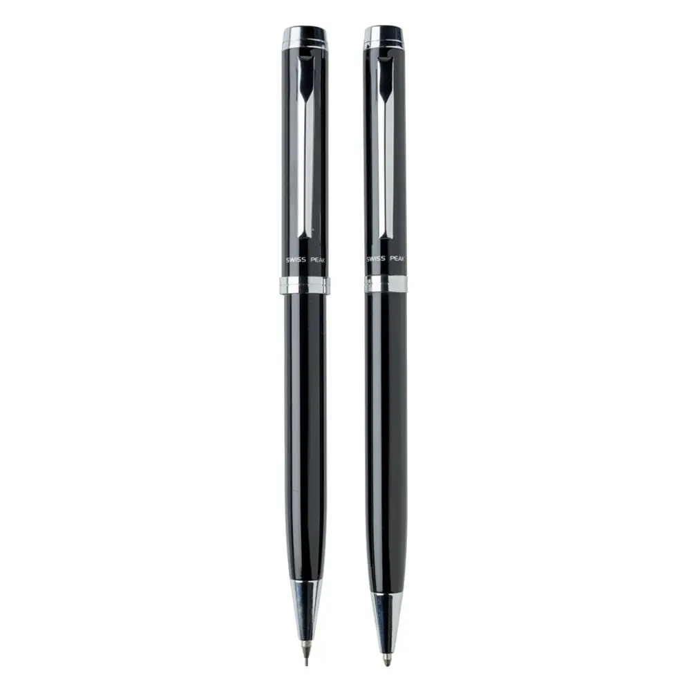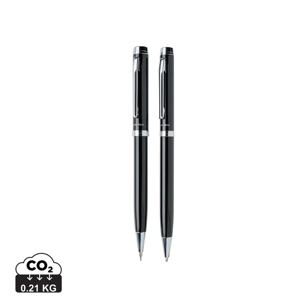 Découvrez le set stylos Swiss Peak Luzern, un duo élégant composé d'un stylo à bille et d'un porte-mines muni de 3 mines de 0,7 mm. Conçu en acier et ABS pour une qualité premium, il offre une écriture fluide grâce à l'encre bleue Dokumental® allemande (environ 1200 m) et une pointe en carbure de tungstène.