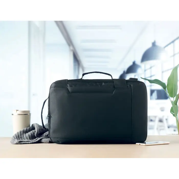 Découvrez notre sac à dos ordinateur conçu pour les professionnels en mouvement. Fabriqué en polyester RPET 300D recyclé, il allie fonctionnalité et engagement écologique, idéal pour personnaliser avec votre logo lors d'événements ou comme cadeau promotionnel.