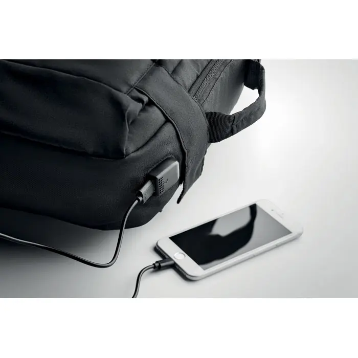 Découvrez le sac à dos ordinateur SINGAPORE, idéal pour les professionnels en déplacement. Fabriqué en polyester RPET 300D recyclé, il allie durabilité et respect de l'environnement, parfait pour une image d'entreprise responsable. Équipé d'une bandoulière rembourrée pour un confort optimal, il dispose d'un compartiment principal pour ordinateur portable jusqu'à 16 pouces et d'un port USB intégré pour charger votre appareil en route.