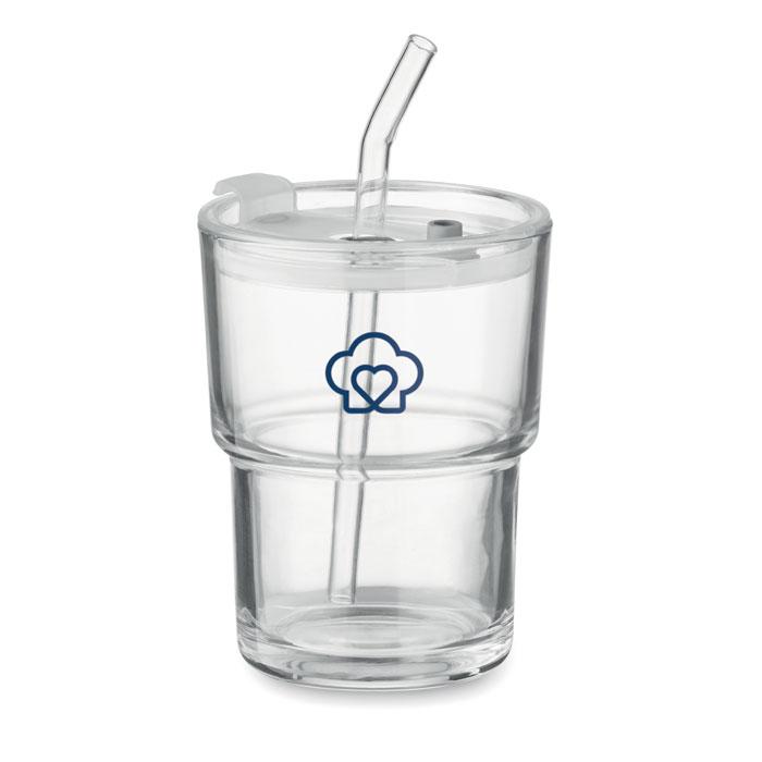 SIP - Gobelet verre et paille 400 ml : offrez un gobelet en verre élégant et réutilisable, équipé d'un couvercle étanche à ouverture directe et d'une paille amovible en verre. Avec une capacité de 400 ml, ce gobelet premium est idéal pour personnaliser avec votre logo et impressionner vos clients lors d'événements ou comme cadeau promotionnel.
