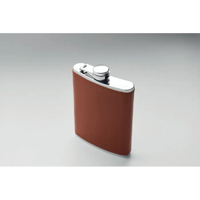 Découvrez cette flasque compacte de 200 ml, fabriquée en acier inoxydable robuste avec un couvercle en cuir PU pour une finition sophistiquée. Idéale pour les professionnels du marketing et les organisateurs d'événements, elle offre une solution discrète et pratique pour transporter des boissons lors de vos manifestations.