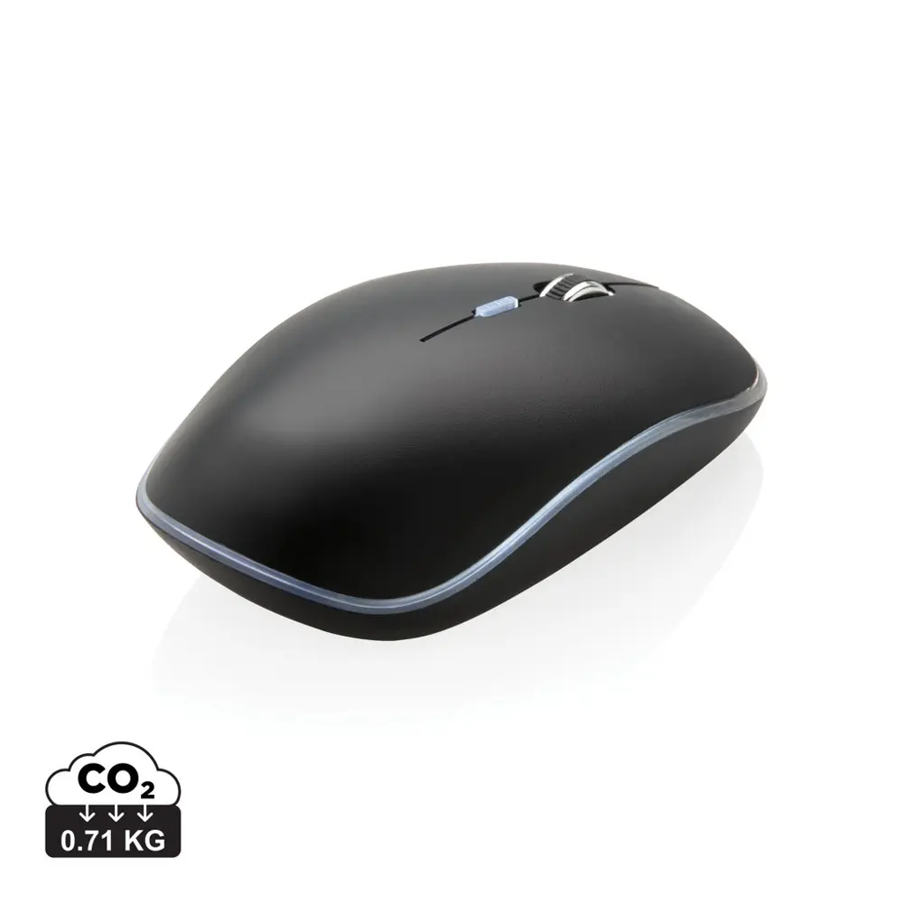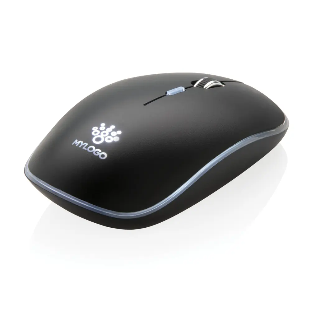 Découvrez notre souris sans fil lumineuse, idéale pour personnaliser avec votre logo et booster votre visibilité lors d'événements ou campagnes promotionnelles. L'éclairage met en valeur votre marque de manière originale, attirant l'attention de vos clients et partenaires. Avec une batterie Li-poly rechargeable en seulement trois heures, elle offre une autonomie fiable pour une utilisation quotidienne sans interruption.