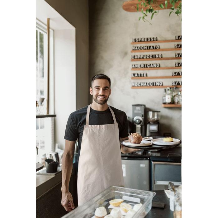 Découvrez notre tablier en coton recyclé, idéal pour vos actions promotionnelles et événements d'entreprise. Fabriqué en 180 gr/m² avec 70% de coton pré-consommation recyclé et 30% polyester RPET, il allie durabilité et confort.