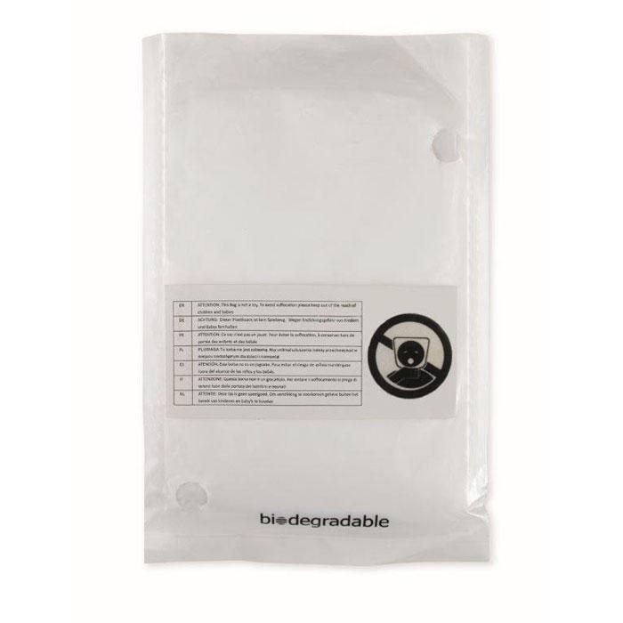 Fabriqué en matériau biodégradable de haute qualité, ce poncho pliable se range facilement dans son sac biodégradable inclus, garantissant une compacité optimale pour une distribution massive.