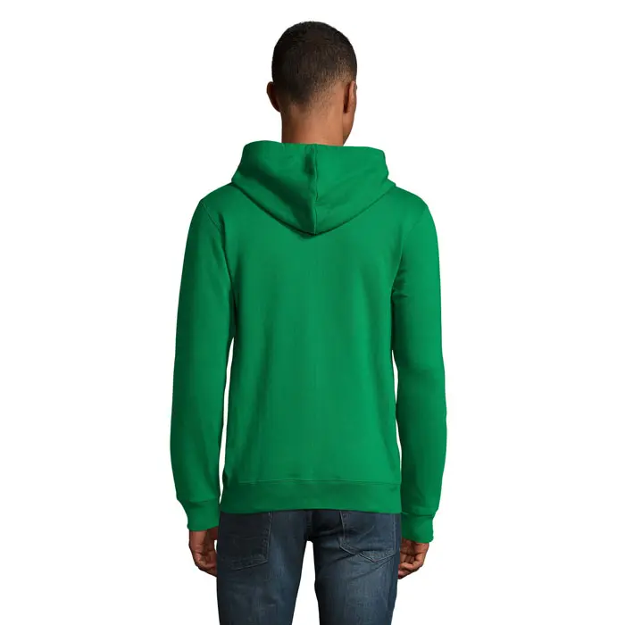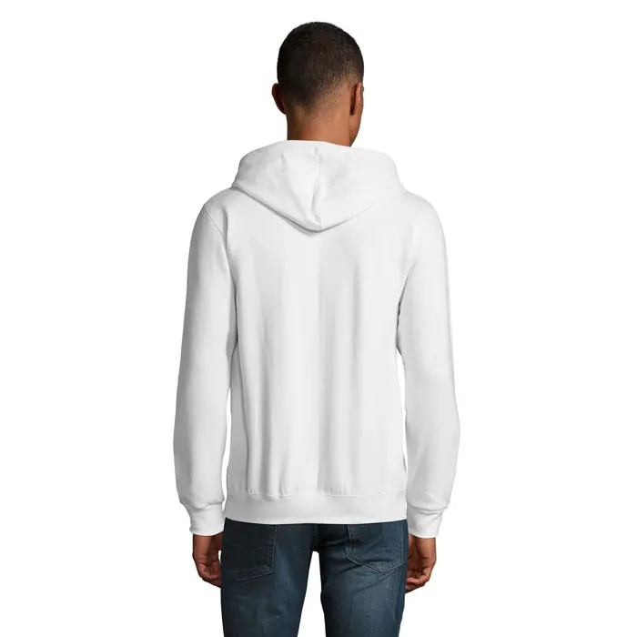 Sa coupe droite et tubulaire, avec manches montées, bord côtelé aux ourlets et poignets, garantit un ajustement polyvalent. Les deux poches kangourou et la capuche avec cordon de serrage ton sur ton ajoutent une touche pratique et stylée, parfaite pour les événements d'entreprise ou les cadeaux clients.