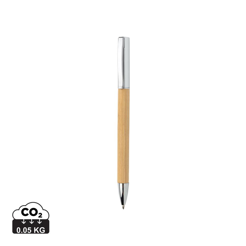 Découvrez ce stylo écologique en bambou et ABS, doté d'une finition métallique mate pour un aspect moderne et professionnel. Idéal pour les entreprises, agences marketing et organisateurs d'événements souhaitant offrir des cadeaux promotionnels personnalisés avec logo.