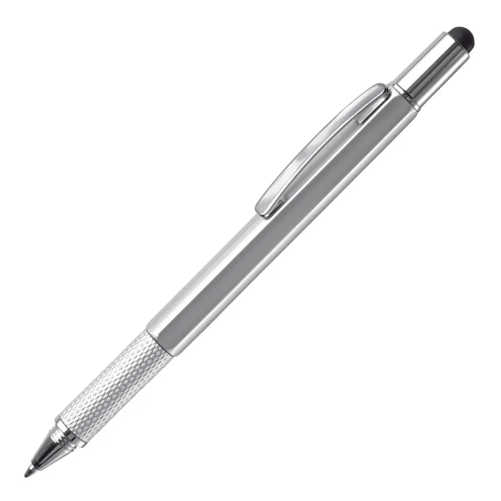 Découvrez le stylo multifonctionnel, un outil polyvalent idéal pour vos campagnes promotionnelles. Équipé d'une pointe pour écrans tactiles, d'un niveau à bulle, d'un tournevis plat et d'une règle intégrée, il offre une écriture fluide avec encre bleue. Personnalisable avec votre logo, ce stylo renforce votre marque auprès de vos clients lors d'événements ou en cadeau relationnel.