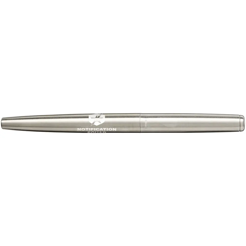 Découvrez le stylo plume qui allie tradition et innovation pour vos campagnes marketing. Ce modèle revisite l'icône originale avec une plume en acier inoxydable pour une écriture fluide et précise, un corps robuste et un capuchon poli qui assure une prise en main confortable. L'attache distinctive en forme de flèche ajoute une touche sophistiquée, idéale pour impressionner vos destinataires.