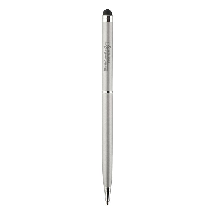 Découvrez ce stylo à bille multifonction au profil fin et élégant, équipé d'un embout stylet précis pour écrans tactiles. Son corps à finition mate et attribut chromé brillant offre un aspect premium et moderne, avec un diamètre de seulement 8 mm pour une prise en main confortable et discrète.