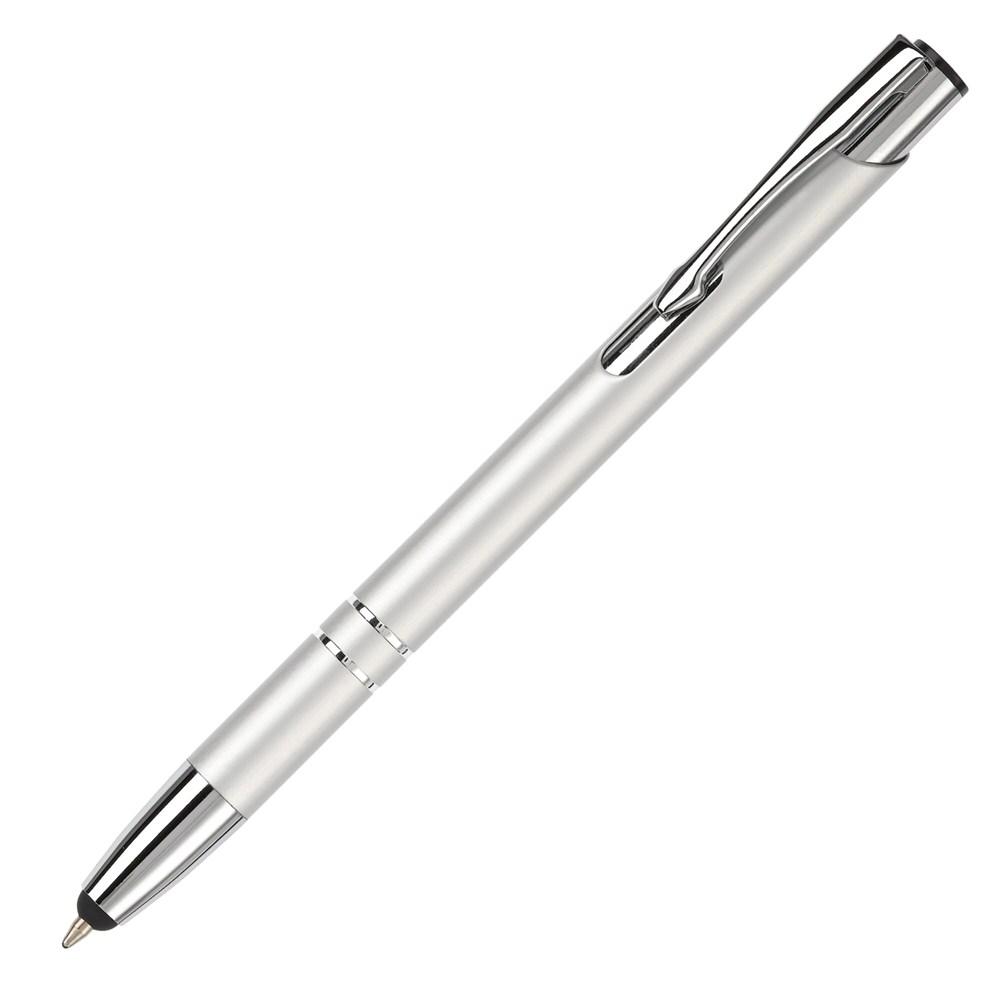 Le stylo stylet Alicante est un instrument d'écriture élégant en aluminium, doté de deux anneaux distinctifs et d'une fonction stylet intégrée pour une utilisation fluide sur écrans tactiles.