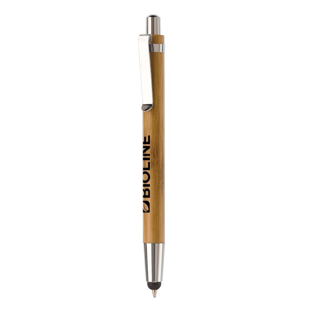 Découvrez ce stylo stylet en bambou écologique, idéal pour vos campagnes promotionnelles et événements d'entreprise. Doté d'un poussoir fluide, d'une clip pratique et d'une pointe en métal précise, il combine écriture traditionnelle et navigation tactile sur écrans.