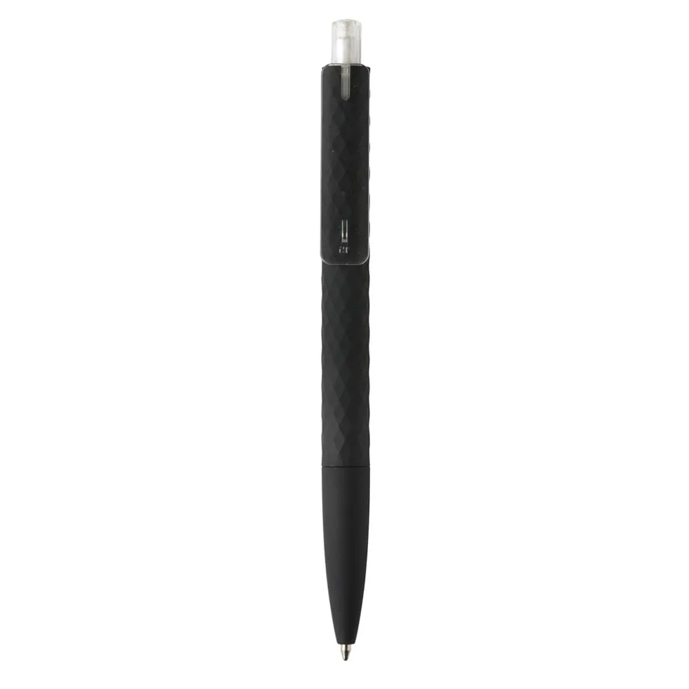 Découvrez le Stylo X3, un stylo à bille rétractable en plastique ABS recyclé et PC, idéal pour vos campagnes promotionnelles. Sa finition texturée losange et gomme offre un confort d'écriture supérieur, parfait pour une utilisation quotidienne. Équipé d'une encre bleue Dokumental® allemande pour environ 1200 mètres d'écriture fluide, grâce à une bille en carbure de tungstène pour des traits réguliers et précis.