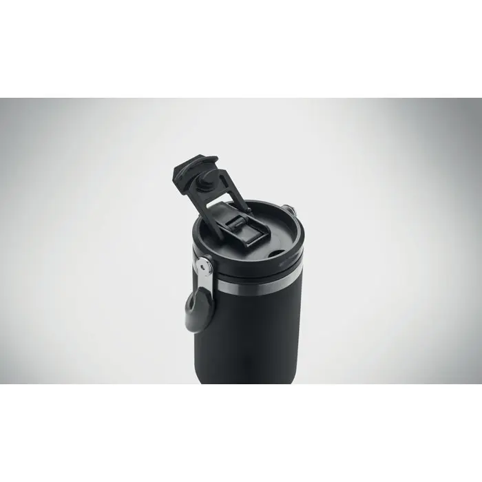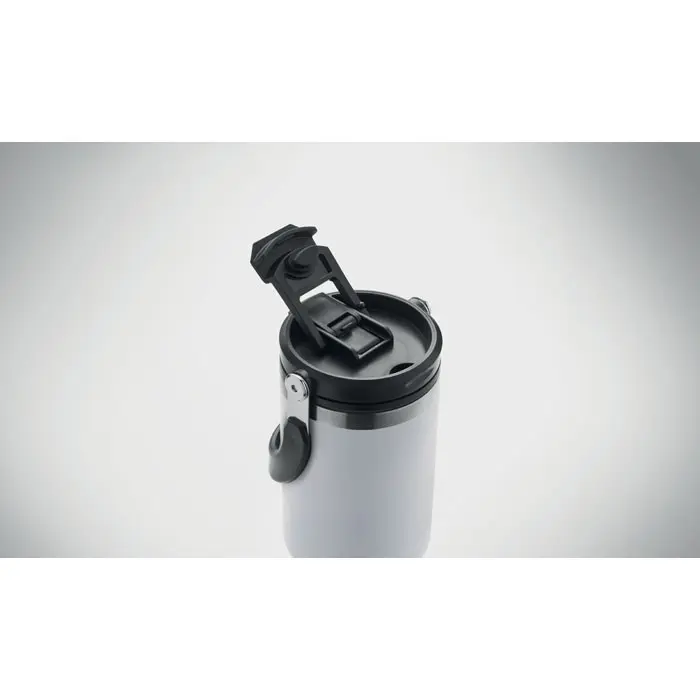Équipé d'un couvercle pratique avec paille intérieure, embout pliable et ouverture pour boire directement, il offre une utilisation polyvalente pour les pauses café ou les rafraîchissements en extérieur. Personnalisez-le avec votre logo pour un cadeau promotionnel impactant qui renforce votre marque auprès de vos clients.