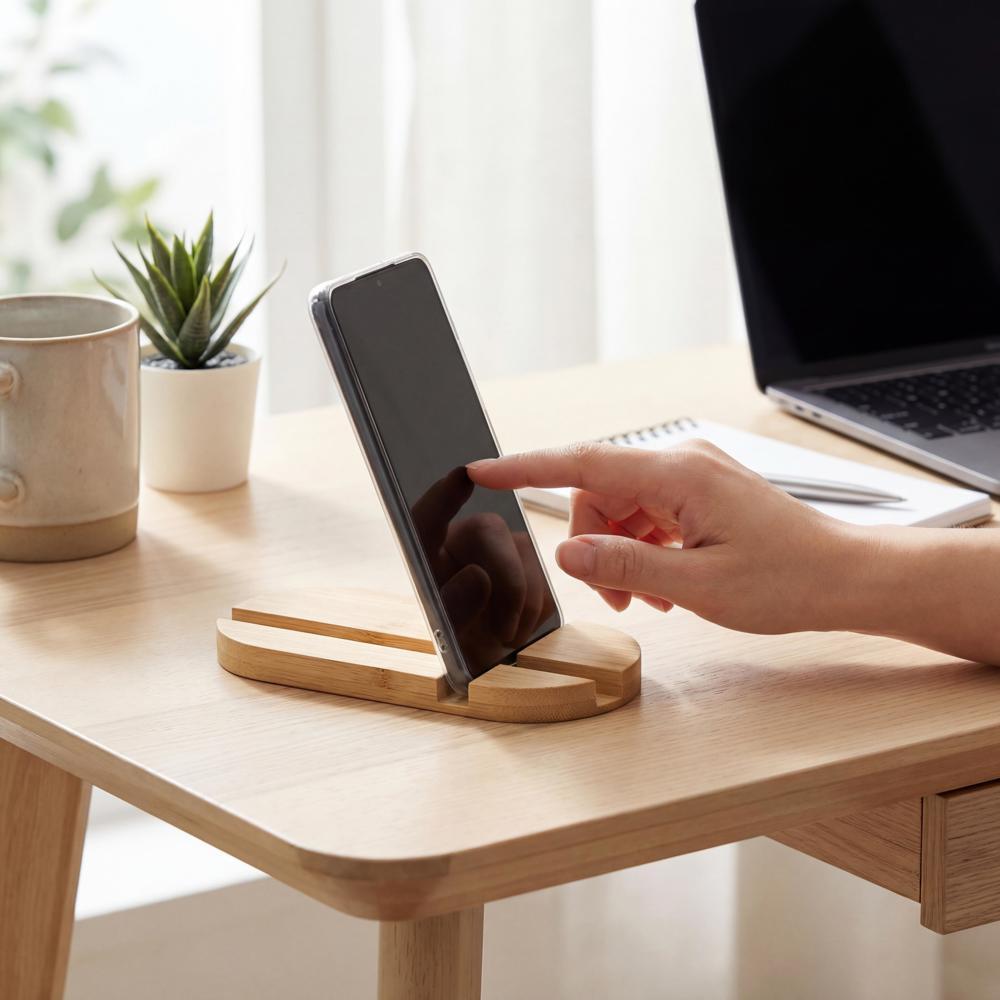 Offrez un gadget utile qui prolonge la visibilité de votre marque au quotidien. Idéal en grandes quantités pour fidéliser vos partenaires et prospects. Parfait pour booster votre SEO avec des mots-clés comme "support smartphone bambou personnalisé" et "gadgets promotionnels écologiques".