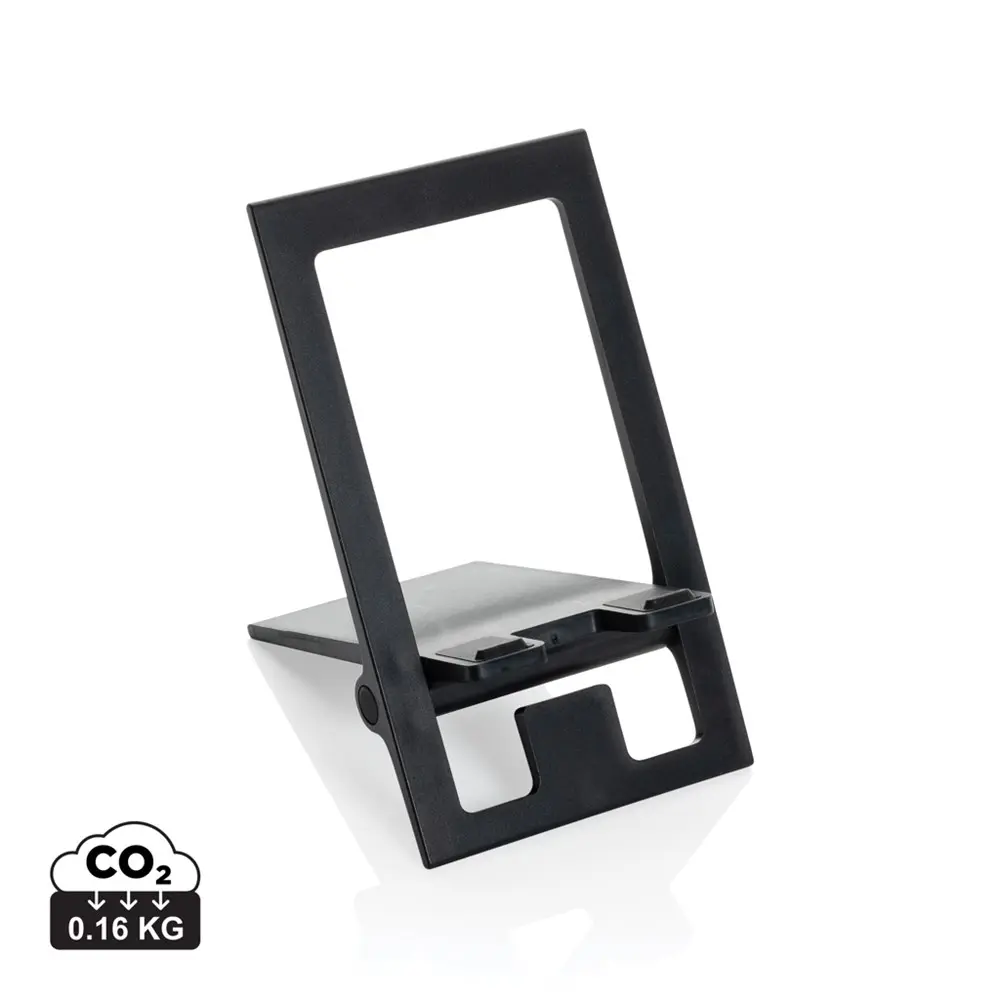 Découvrez notre support téléphone plat et pliable, fabriqué en ABS recyclé RCS. Ce produit innovant se livre à plat pour un rangement facile et se déploie en un instant. Il s'adapte à toutes les tailles de smartphones, offrant une stabilité optimale pour ajuster l'angle de vision selon vos besoins. Le rembourrage en silicone maintient votre appareil en position sécurisée, protégeant contre les glissades et les rayures.