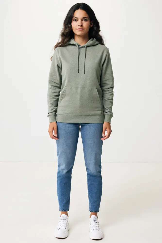 Découvrez ce sweat à capuche unisexe à coupe classique, idéal pour vos campagnes marketing et événements d'entreprise. Fabriqué en 100 % coton, dont 50 % recyclé et 50 % biologique, il pèse 340 g/m² pour une qualité robuste et durable.