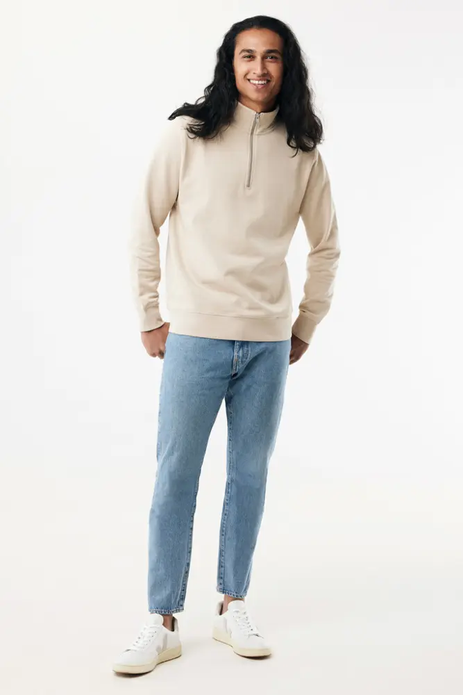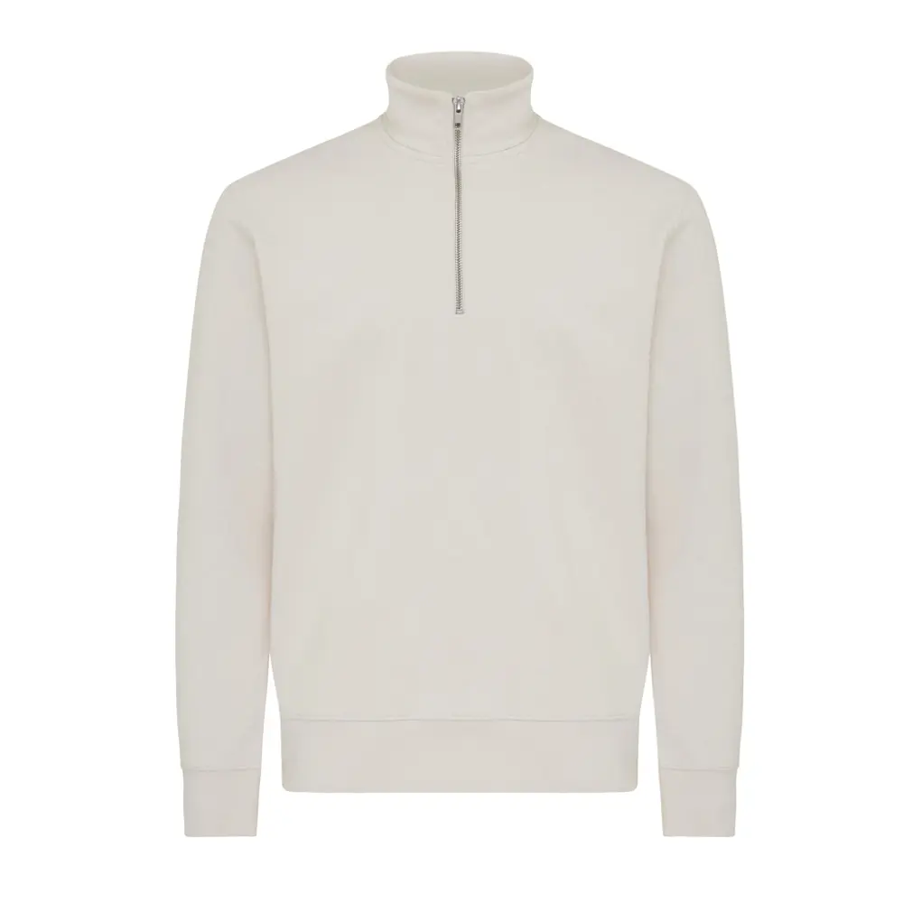 Découvrez le sweater IQONIQ unisexe à col montant zippé Elgon, idéal pour vos campagnes marketing et événements d'entreprise. Conçu en 100 % coton – 30 % recyclé et 70 % biologique – avec un poids de 300 g/m², il offre un confort optimal grâce à son intérieur en French Terry, ses manches montées et ses côtes 1x1 aux poignets et à l'ourlet. La coupe moderne et la fermeture éclair ¼ en font un choix polyvalent pour une personnalisation avec votre logo, renforçant votre image de marque éco-responsable.