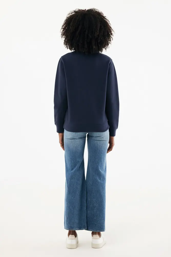 Fabriqué en 100 % coton, dont 30 % recyclé et 70 % biologique, ce sweater pèse 300 g/m² pour une robustesse accrue. Les manches montées et les côtes 1x1 aux poignets et à l'ourlet assurent une coupe ajustée et durable. Certifié OEKO-TEX® STANDARD 100 par Centexbel, il respecte les normes de sécurité et d'absence de substances nocives. Grâce à la technologie AWARE™, un traceur physique et blockchain garantit la traçabilité des matériaux authentiques. Scannez le code QR pour accéder au passeport numérique du produit et vérifier son impact écologique.