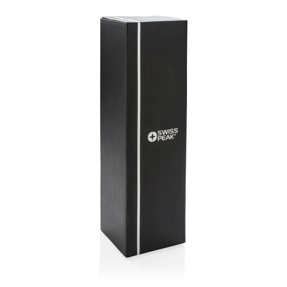 Découvrez la bouteille isotherme Swiss Peak de 700 ml, idéale pour vos campagnes promotionnelles et événements d'entreprise. Fabriquée en acier inoxydable à double paroi, elle maintient les boissons chaudes jusqu'à 5 heures et froides jusqu'à 15 heures, garantissant une fraîcheur optimale pour vos clients. Son design élégant inclut une poignée pratique, une bandoulière réglable et deux tasses incluses, pour une utilisation nomade et conviviale. Parfaitement conforme aux normes de sécurité alimentaire (sans BPA), ce modèle déposé est personnalisable avec votre logo, renforçant votre image de marque lors de distributions massives. Offrez un cadeau relationnel durable et écologique qui fidélise vos partenaires professionnels. Diamètre : 75 mm. Contenance : 0,7 l.