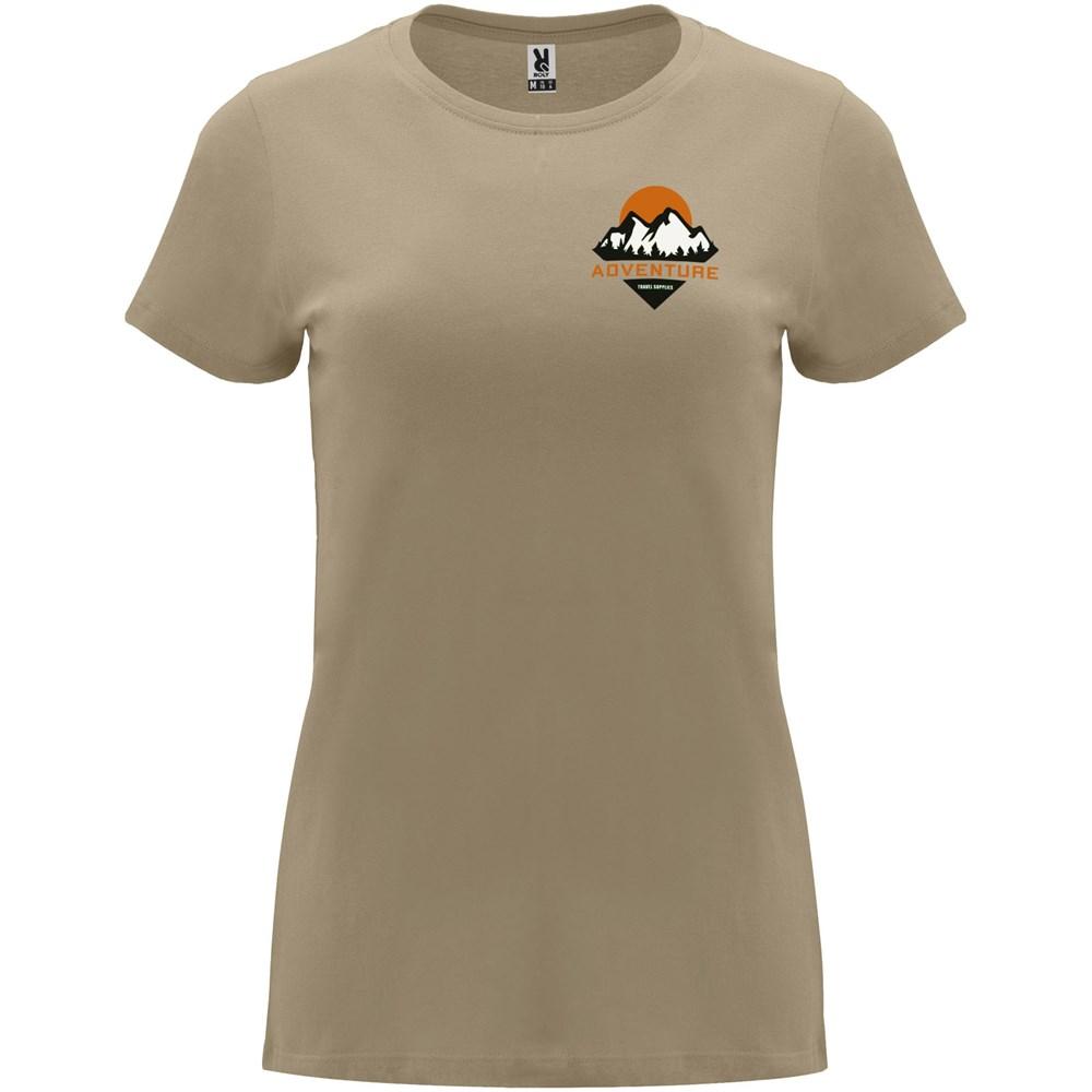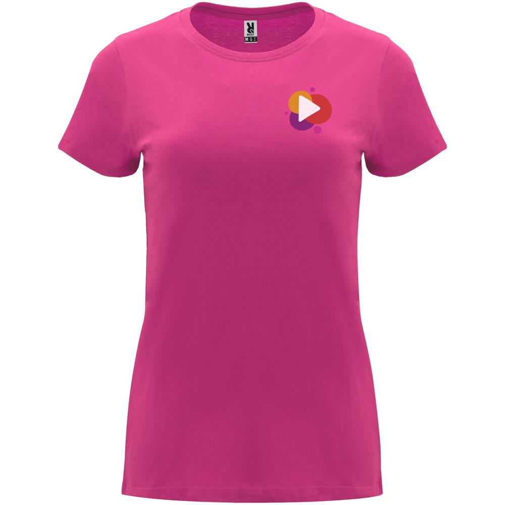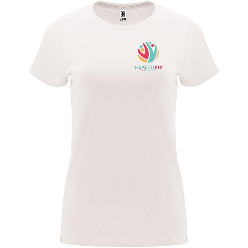 Le T-shirt Capri à manches courtes pour femme est le choix idéal pour vos campagnes promotionnelles et événements d'entreprise. Son ajustement slim met en valeur la silhouette tout en offrant un confort optimal grâce à son col rond côtelé 1x1 et ses coutures recouvertes renforcées au col, garantissant une durabilité accrue lors des distributions massives.