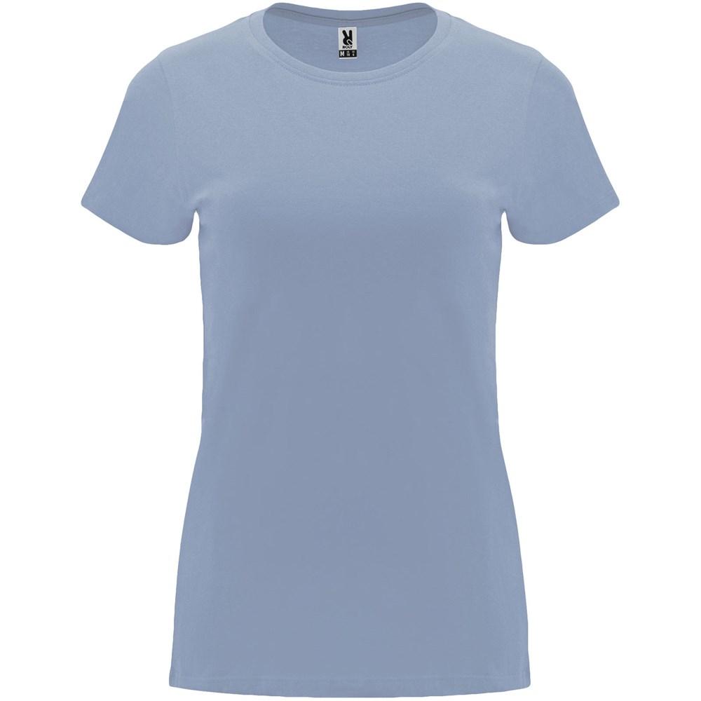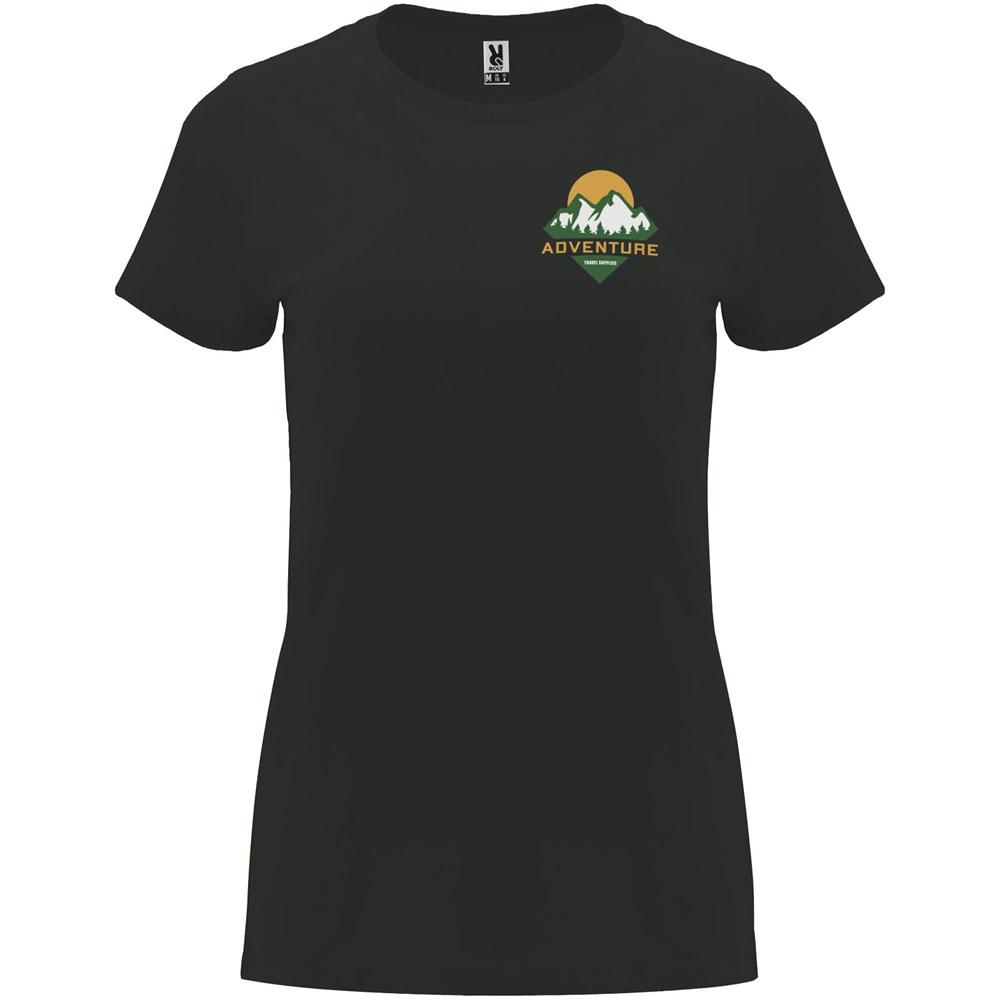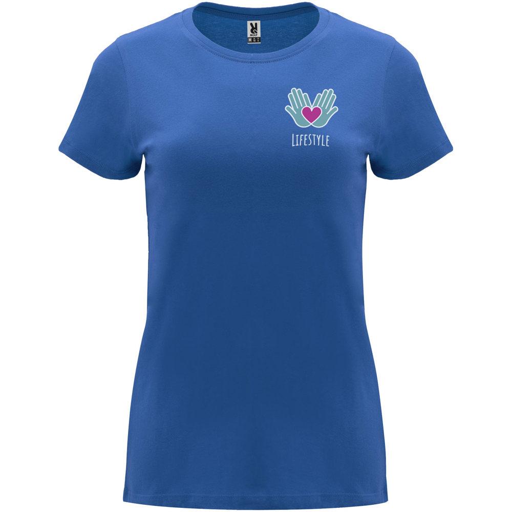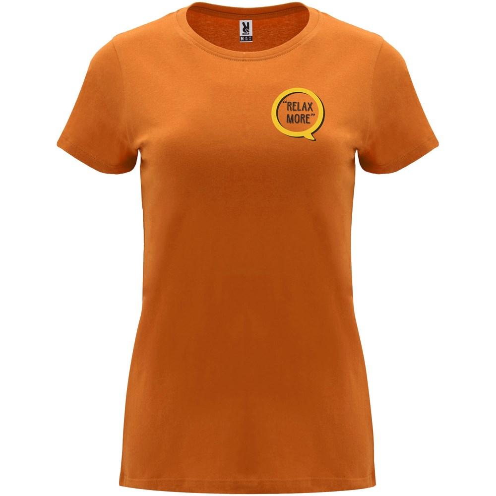 Le T-shirt Capri à manches courtes pour femme est le choix idéal pour vos campagnes promotionnelles et événements d'entreprise. Son ajustement slim met en valeur la silhouette tout en offrant un confort optimal grâce à son col rond côtelé 1x1 et ses coutures recouvertes renforcées au col, garantissant une durabilité accrue lors des distributions massives.