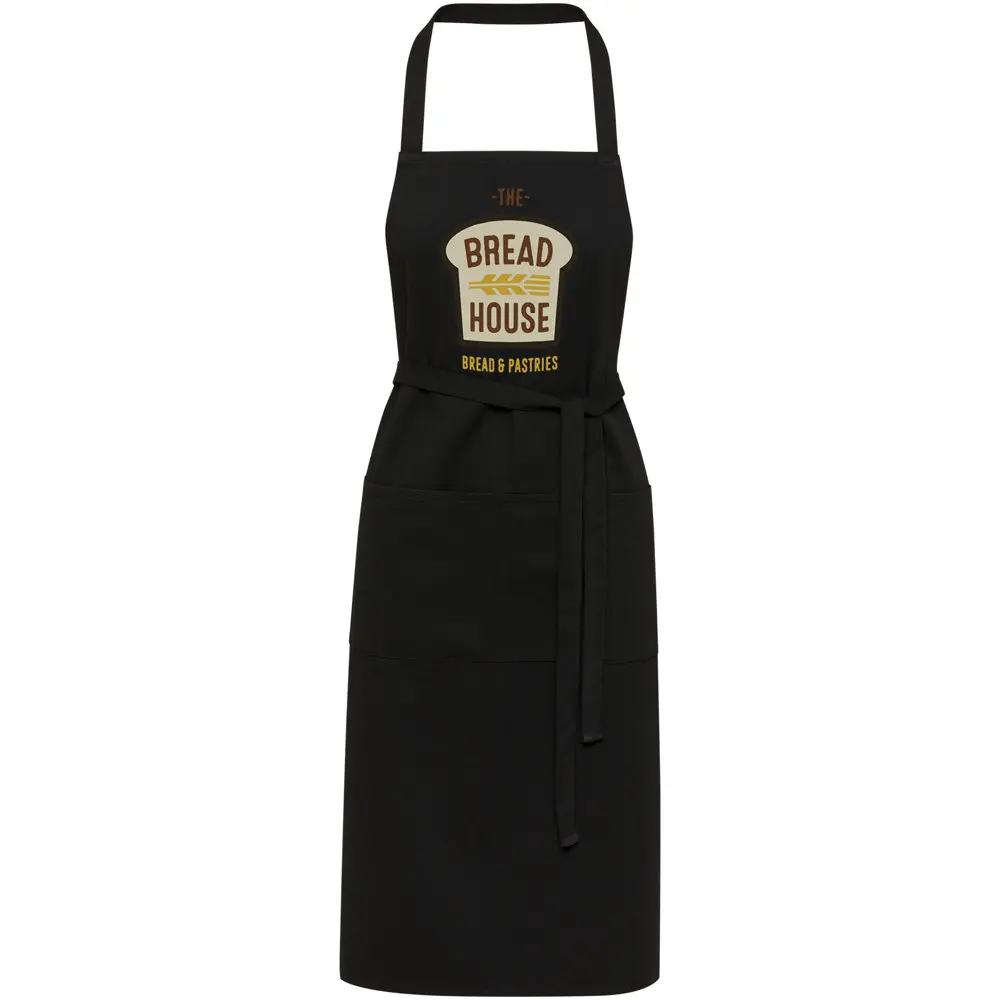 Le tablier Shara, d'une taille généreuse de 100 x 70 cm, est fabriqué en coton recyclé à 70 % et polyester recyclé à 30 %, avec une épaisseur de 240 g/m² pour une solidité et un confort exceptionnels. Équipé de deux poches pratiques (22 x 20 cm) et d'une fermeture à nouer d'un mètre, il s'adapte parfaitement aux besoins professionnels lors d'événements ou de campagnes marketing.