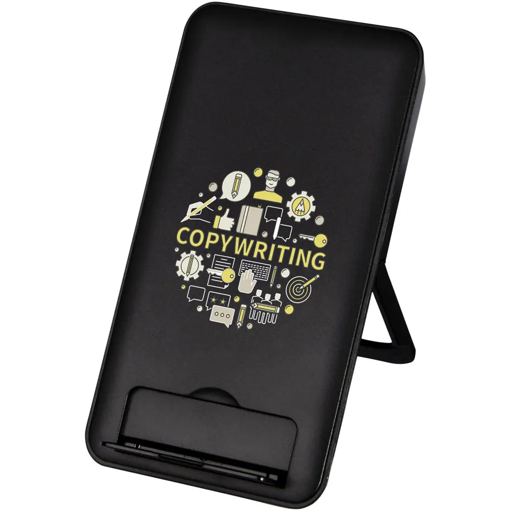 Découvrez le tapis de charge à induction Loop recyclé de 10 W avec support téléphone, un accessoire de bureau polyvalent en plastique ABS recyclé. Parfait pour les entreprises et organisateurs d'événements, il se personnalise facilement avec votre logo pour des cadeaux promotionnels impactants.