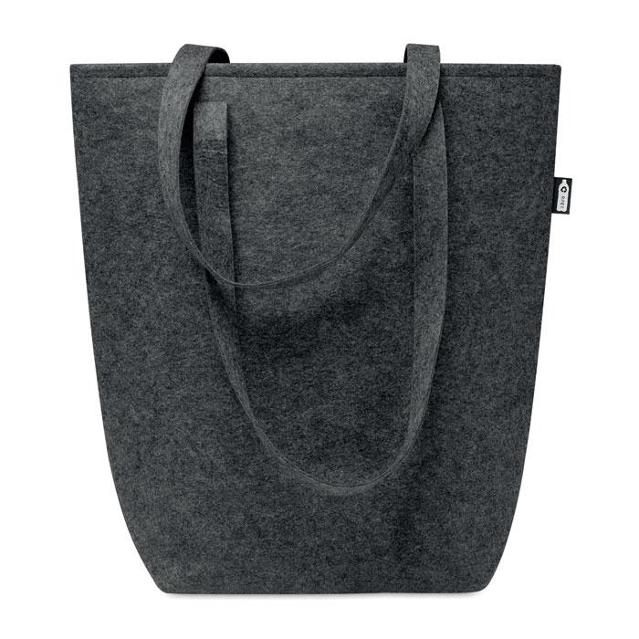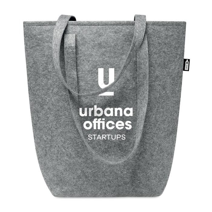 Découvrez notre sac shopping en feutre RPET, fabriqué à partir de matériaux recyclés pour une démarche écologique responsable. Avec ses anses longues et son soufflet au fond, il offre un volume généreux et un port confortable, idéal pour transporter achats ou goodies d'événement.