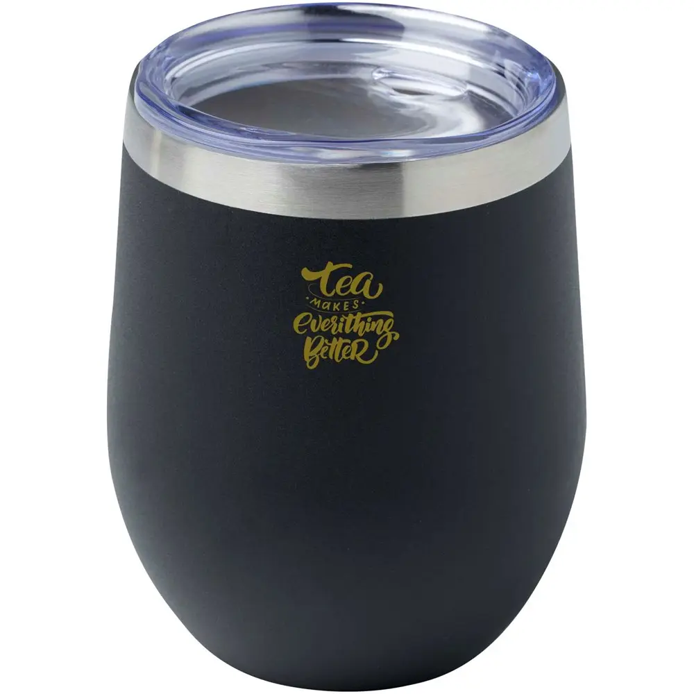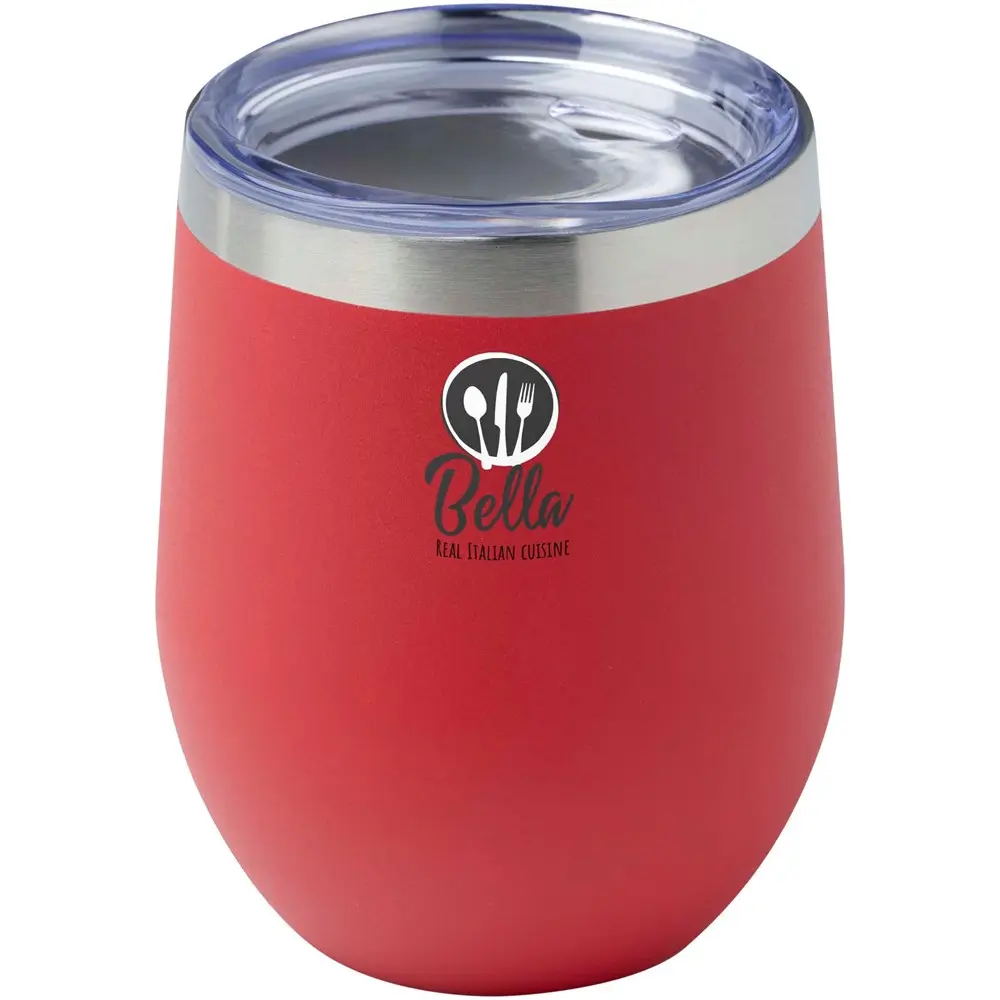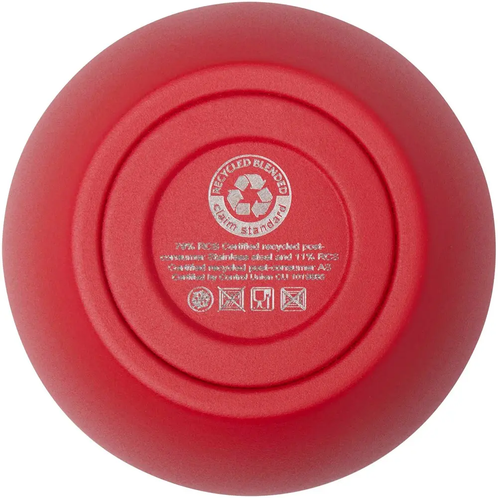 Le gobelet isotherme Corzo de 350 ml, fabriqué en acier inoxydable recyclé certifié RCS, offre une isolation supérieure grâce à sa double paroi sous vide et sa couche de cuivre. Il maintient les boissons chaudes jusqu'à 6 heures et froides jusqu'à 24 heures, idéal pour des événements prolongés ou des journées actives. Sans condensation extérieure, il reste propre et professionnel lors des distributions.