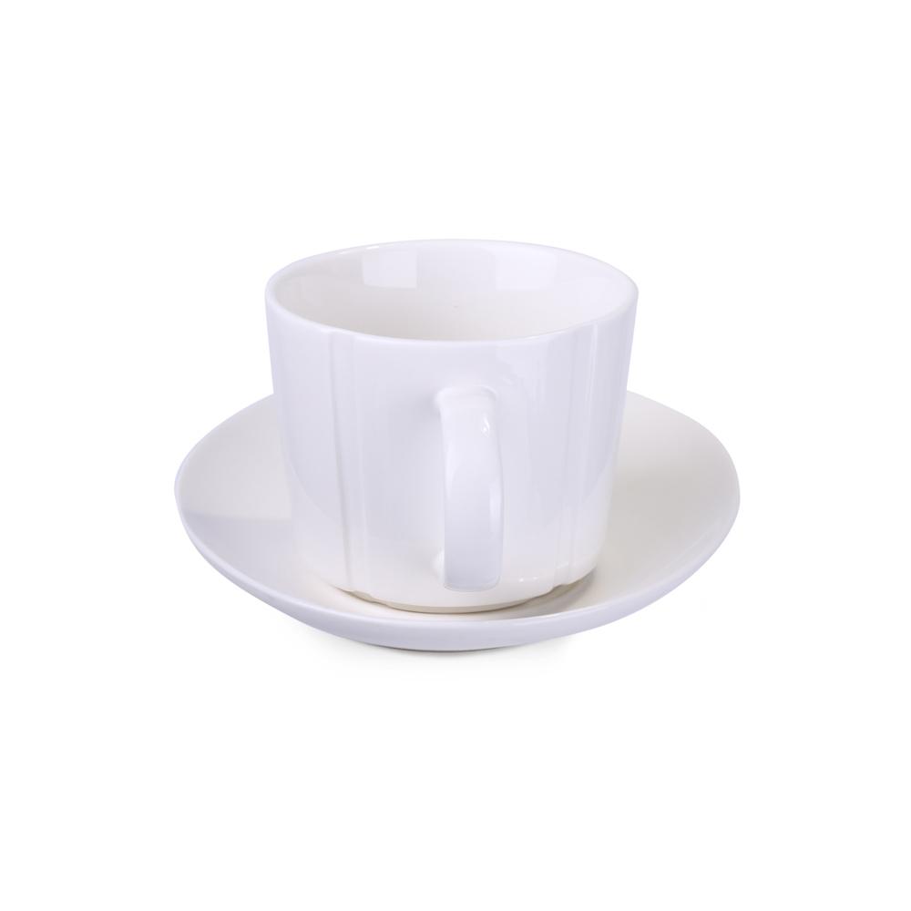 Découvrez cette tasse en porcelaine unique, ornée de rainures décoratives élégantes de part et d'autre de l'anse. Son design distinctif capture immédiatement l'attention et sublime toute personnalisation avec votre logo ou message de marque.