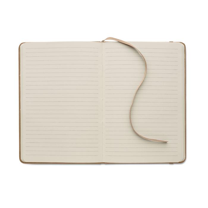 Reliure dos collé robuste, 160 pages lignées sur papier recyclé 70 g/m² (80 feuilles), élastique de fermeture et ruban marque-page assorti assurent une qualité premium et une utilisation quotidienne confortable.