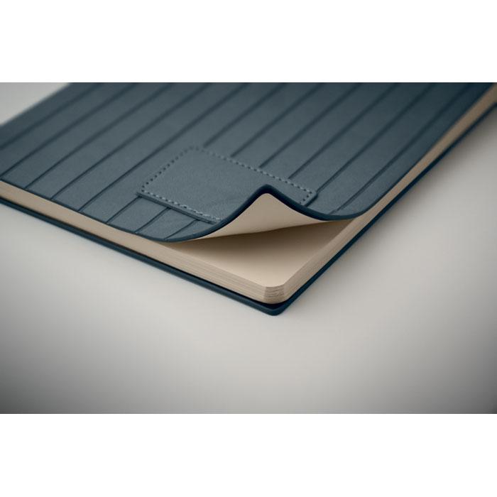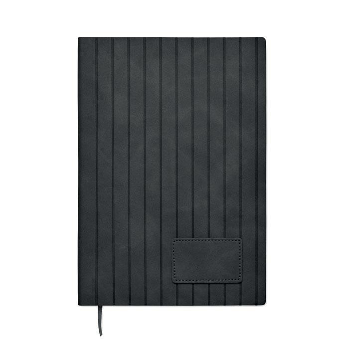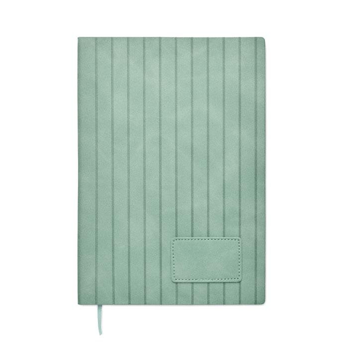 Découvrez ce carnet A5 au design élégant et durable, idéal pour vos campagnes promotionnelles et événements d'entreprise. Sa couverture souple nervurée en PU effet patiné, composée à 40 % de matériau recyclé post-consommation et 60 % de PU, offre un aspect vintage raffiné avec un patch uni pour une touche sophistiquée.