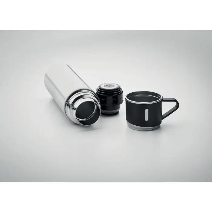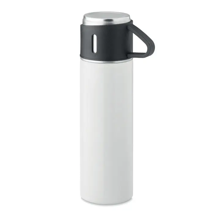 Découvrez la bouteille double paroi TONIA de 420 ml, une gourde en acier inoxydable à isolation sous vide qui maintient vos boissons chaudes ou froides pendant des heures. Équipée d'un bouchon étanche transformable en gobelet de 150 ml, elle est idéale pour les événements professionnels et les campagnes marketing. Personnalisez-la avec votre logo pour un cadeau promotionnel durable et pratique, renforçant la visibilité de votre marque auprès de vos clients. Parfaite pour les organisateurs d'événements et les responsables marketing cherchant des objets publicitaires de qualité supérieure.
