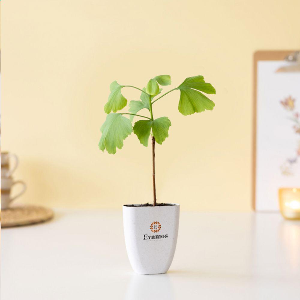 Offrez un cadeau nature innovant avec cet arbre noyer du Japon (Ginkgo biloba) prêt-à-poster de Treemore. Issu de pépinières néerlandaises, il arrive dans un pot biosourcé en fibres d'herbe à éléphant, avec terreau inclus, emballage FSC et livret 100 % recyclables. Parfait pour personnaliser avec votre logo et impressionner vos clients lors d'événements ou campagnes marketing.