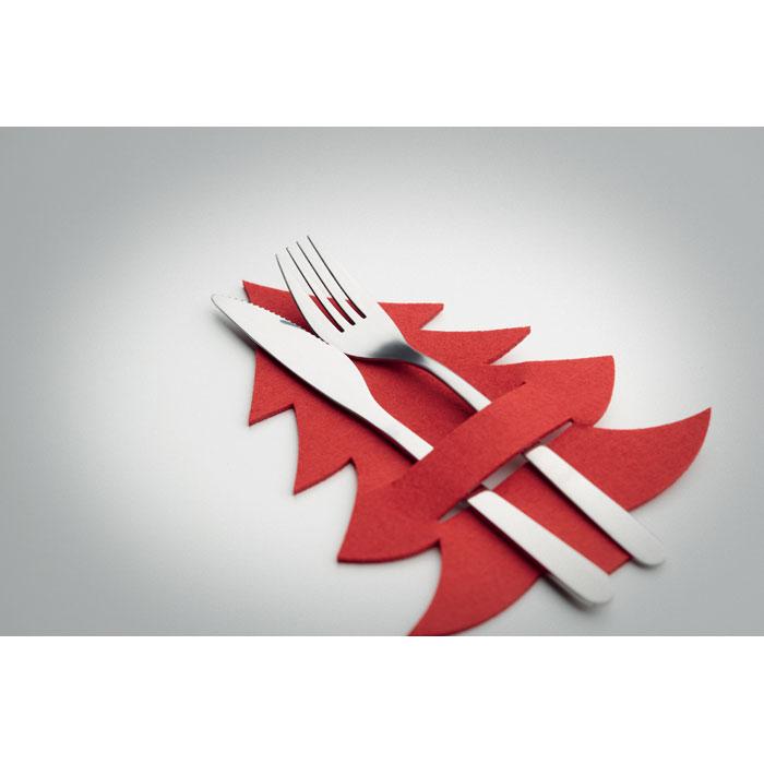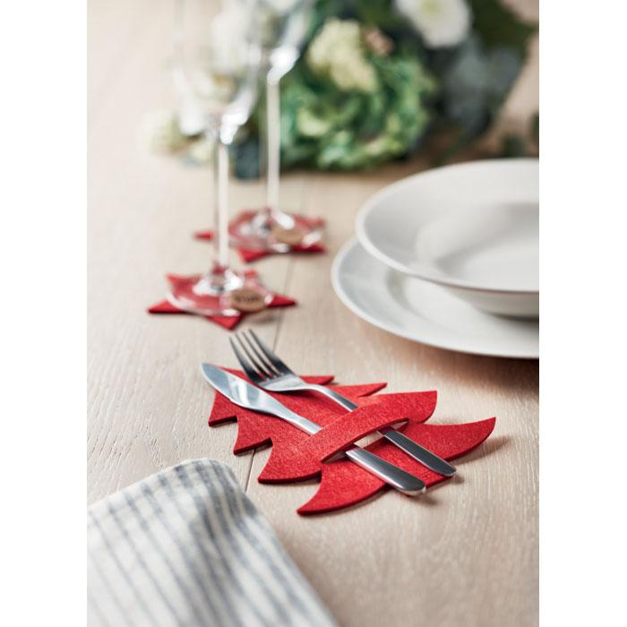 Lot de 4 porte-couverts en feutre RPET forme sapin de Noël