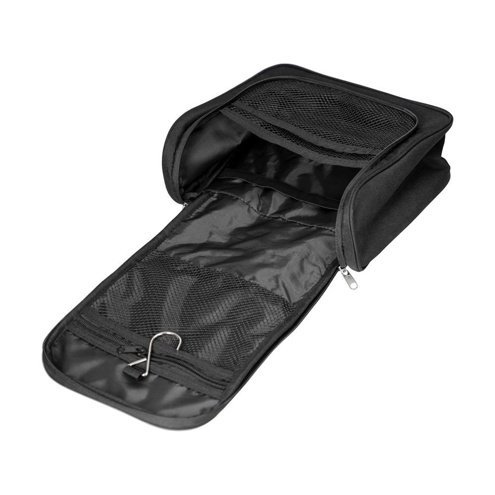 Son grand compartiment principal zippé intègre une poche en filet, une poche supplémentaire zippée et un crochet de suspension pour une utilisation facile sous la douche. Les grandes languettes en caoutchouc maintiennent fermement brosse à dents et ustensiles. Le compartiment frontal zippé accueille les petits objets essentiels.
