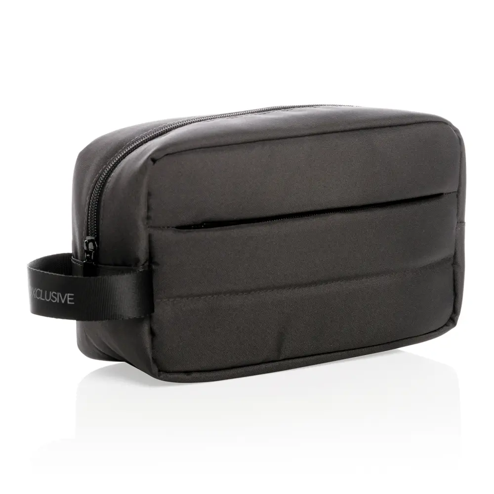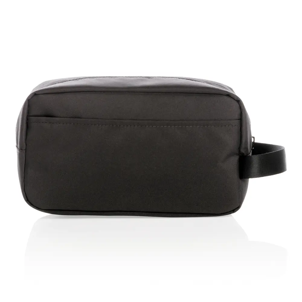Offrez à vos clients ou partenaires un cadeau d'entreprise pratique qui met en valeur votre marque. Cette trousse personnalisable avec votre logo est parfaite pour les events ou campagnes promotionnelles. Son grand compartiment principal (2,3 L) range facilement les articles de toilette, tandis que la poche avant zippée organise les petits objets essentiels. Conçue sans PVC, elle respecte les normes strictes : conforme aux directives sur les colorants azoïques, cadmium, phtalates, REACH, PAHS, nickel et plomb. Elle booste votre SEO avec des mots-clés comme "trousse de toilette recyclée" et "cadeau d'entreprise durable", attirant les acheteurs éco-responsables.