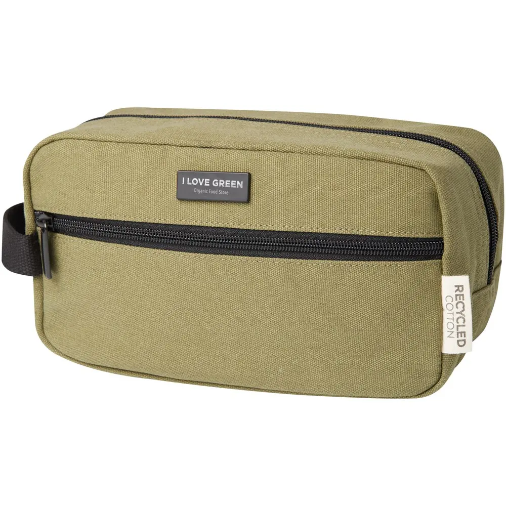 Découvrez la pochette pour accessoires de voyage Joey, un choix idéal pour vos campagnes marketing et événements. Fabriquée en toile recyclée certifiée GRS (80% coton recyclé et 20% coton, 330 g/m²) avec doublure en RPET certifiée GRS, elle allie durabilité et style écologique. Dotez-la de votre logo sur la plaque métallique décorative pour une visibilité optimale auprès de vos clients.