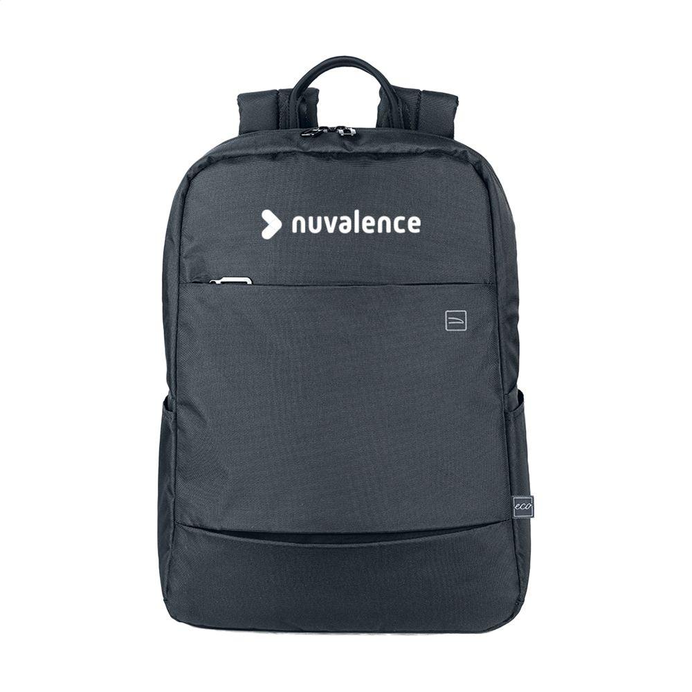 Découvrez ce sac à dos moderne et compact de la marque italienne Tucano, idéal pour vos campagnes marketing et événements d'entreprise. Fabriqué à partir de plastique recyclé équivalent à 12 bouteilles PET, il allie durabilité environnementale et style contemporain, parfait pour des cadeaux promotionnels personnalisés avec votre logo.