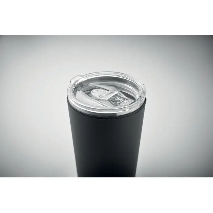 Découvrez le TUMLADO, gobelet double paroi de 350 ml en acier inoxydable recyclé (90 % recyclé), idéal pour vos campagnes marketing et événements. Sa double paroi assure une isolation thermique optimale, conservant boissons chaudes ou froides plus longtemps, tandis que le manchon amovible en cuir PU offre une prise en main confortable et élégante. Le couvercle à ouverture coulissante est anti-fuite, garantissant une utilisation sans souci.
