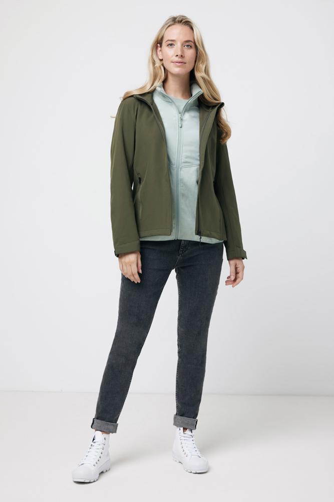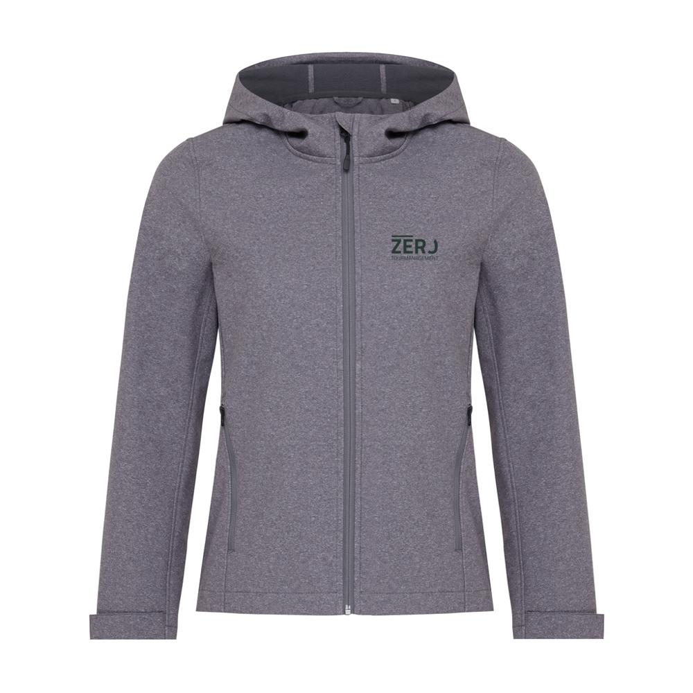 Découvrez cette veste softshell femme à coupe moyenne, idéale pour vos campagnes marketing et événements d'entreprise. Fabriquée en polyester recyclé avec un tissu trois couches de 300 g/m², elle intègre une membrane TPU recyclée et une doublure en micro polaire douce pour un confort optimal.