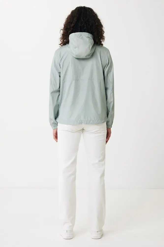 Découvrez la veste légère IQONIQ Logan, un choix idéal pour vos campagnes promotionnelles et événements d'entreprise. Fabriquée en 100 % polyester recyclé post-consommation (70 g/m²), cette veste unisexe à coupe décontractée offre un confort optimal avec sa capuche réglable, sa fermeture zippée inversée et ses poches passepoilées. Les poignets élastiques, l'ourlet incurvé et l'imprégnation déperlante sans fluor ni PFAS assurent une protection efficace et un look raffiné, parfait pour impressionner vos clients.