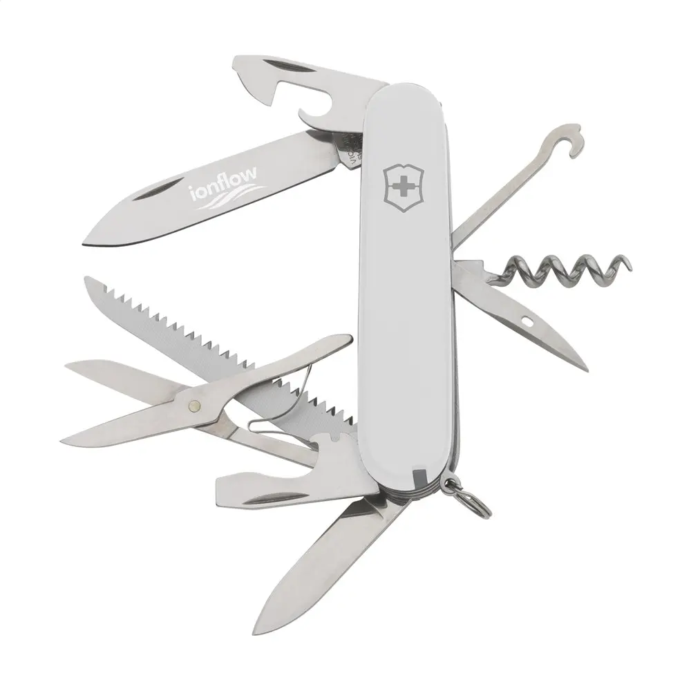 Découvrez le Victorinox Huntsman, un couteau suisse multifonction iconique de 91 mm, idéal pour personnaliser avec votre logo d'entreprise. Fabriqué avec une poignée en ABS robuste, des plaques en aluminium anodisé et des outils en acier inoxydable recyclé, il offre 15 fonctions essentielles : grand et petit couteau, tire-bouchon, ouvre-boîte, décapsuleur, pince à dénuder, alésoir, scie à bois, ciseaux, crochet multifonction, pince à épiler et cure-dent.
