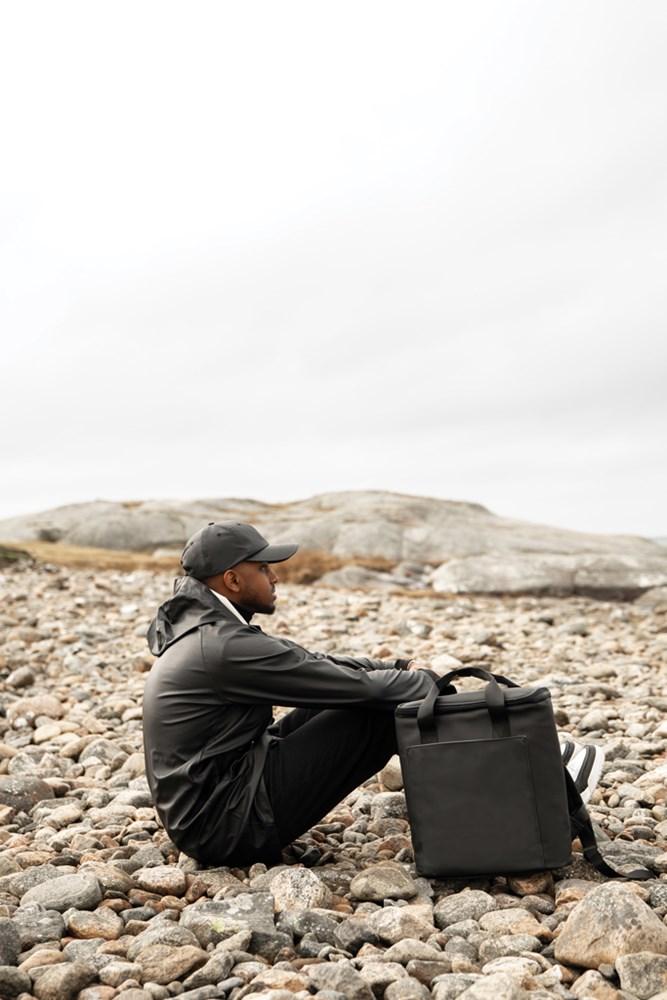 Fabriquée en PET recyclé certifié par le traceur AWARE™, elle prouve l'utilisation authentique de matériaux recyclés. PVC-free, elle allie style épuré et engagement environnemental : 2 % des recettes sont reversés à Water.org pour un impact positif.