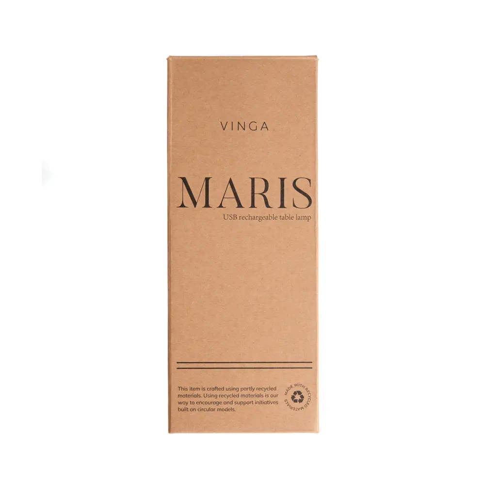 Découvrez la lampe Maris VINGA, un cadeau d'entreprise personnalisable idéal pour vos événements marketing. Fabriquée en métal robuste et ABS recyclé certifié RCS (11 % de contenu recyclé), elle illumine jusqu'à 8 heures et s'adapte à tous les usages professionnels.