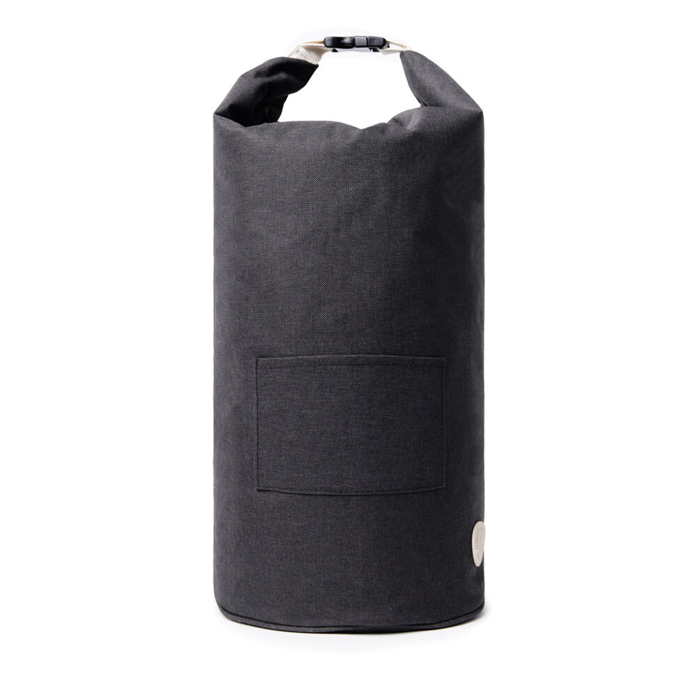 Fabriqué en PET recyclé, ce sac est exempt de PVC et conforme aux normes strictes européennes et internationales sur la sécurité alimentaire et les substances chimiques. Son textile résistant au tissage bicolore offre un effet chiné élégant et robuste, résistant à l'usure quotidienne. La bandoulière en coton assure un port confortable sur l'épaule, facilitant son transport et son rangement facile.