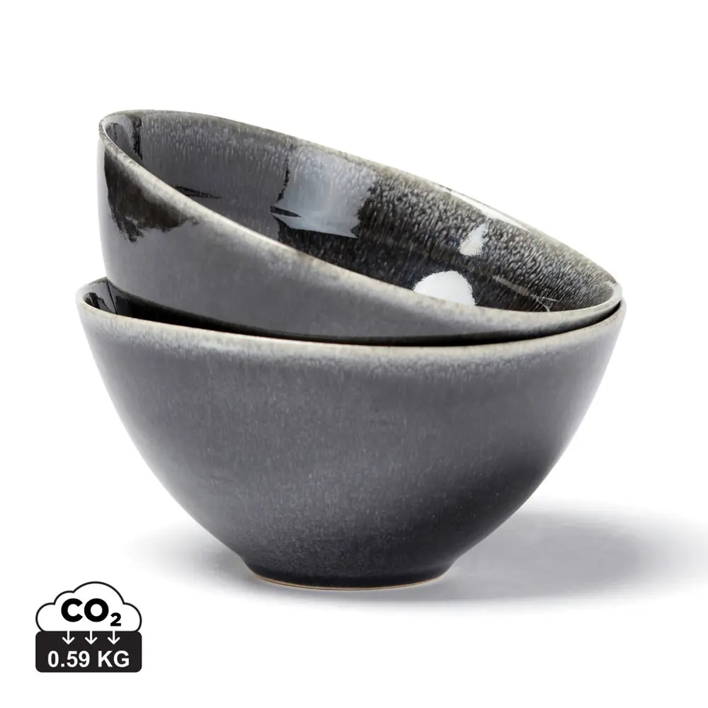 Découvrez le Set de 2 petits bols 15,5 cm Nomimono de Vinga, idéal pour personnaliser avec votre logo et offrir un cadeau d'entreprise unique. Inspiré de la nature, cet ensemble en grès rustique fusionne l'esthétique japonaise et scandinave, apportant une touche moderne et terre-à-terre à vos événements ou campagnes marketing.