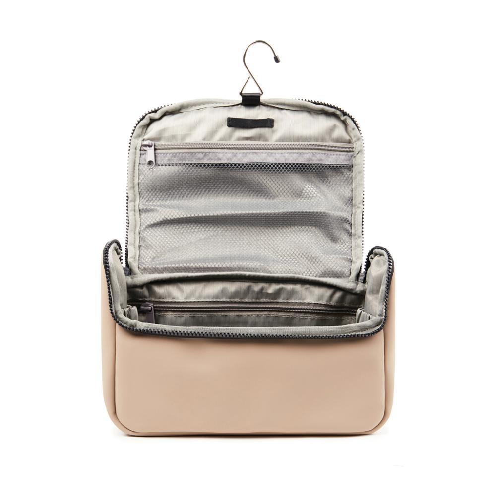 Son intérieur organisé avec plusieurs poches accueille tous les essentiels de toilette, tandis qu'un crochet pratique permet de la suspendre n'importe où pour un accès rapide.